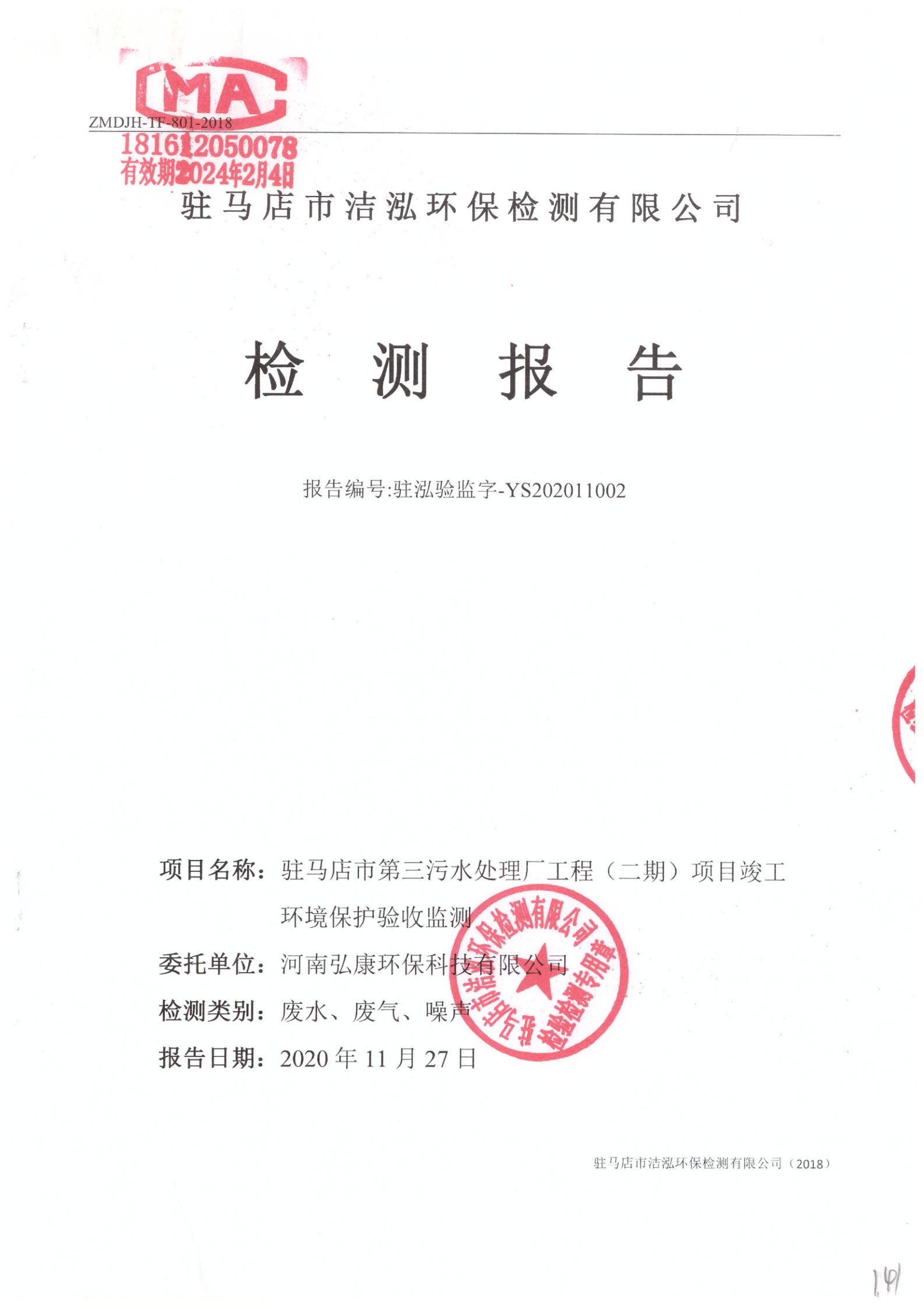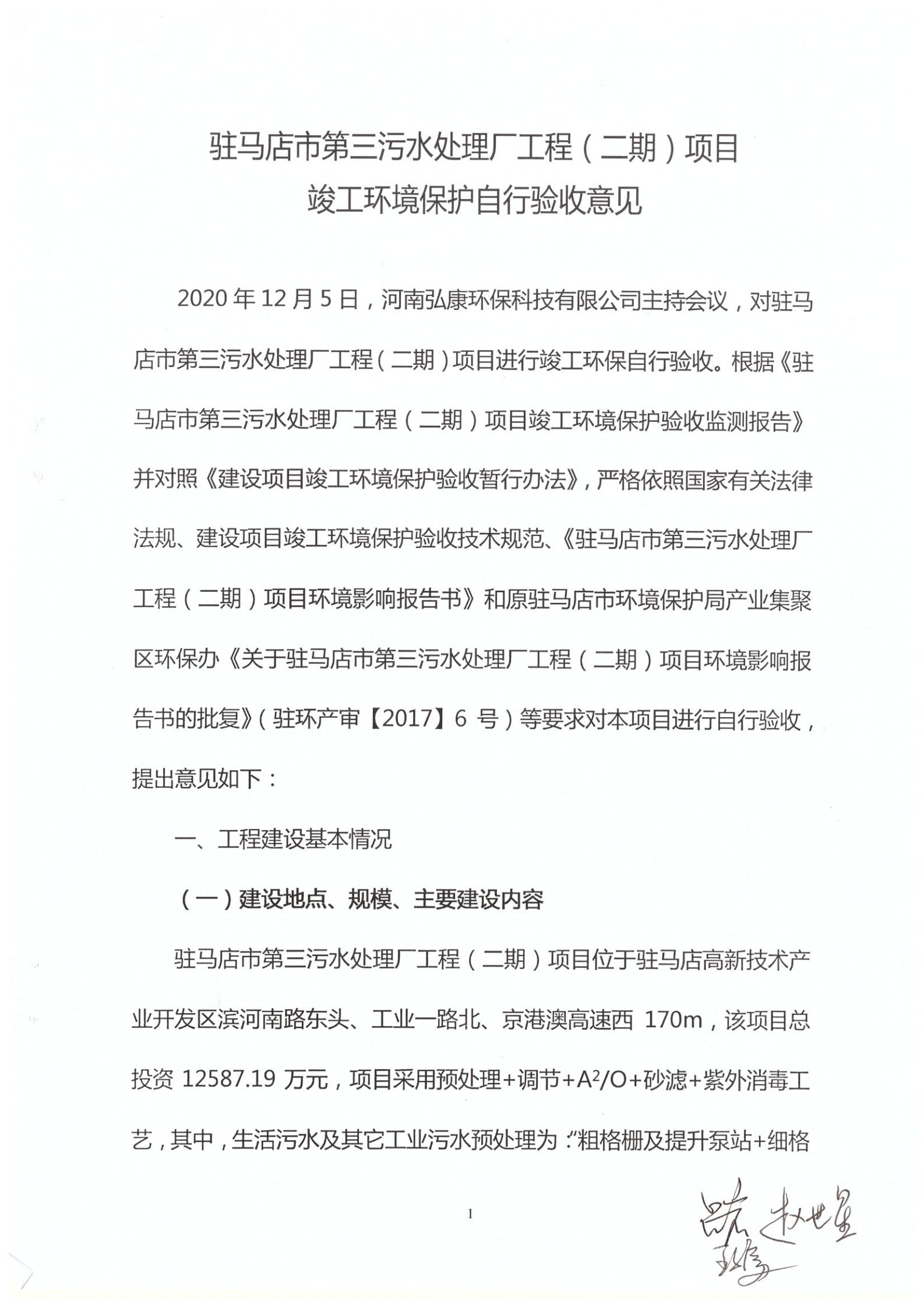 河南弘康環(huán)保科技有限公司駐馬店市第三污水處理廠工程(二期)項(xiàng)目竣工環(huán)境保護(hù)驗(yàn)收?qǐng)?bào)告公示